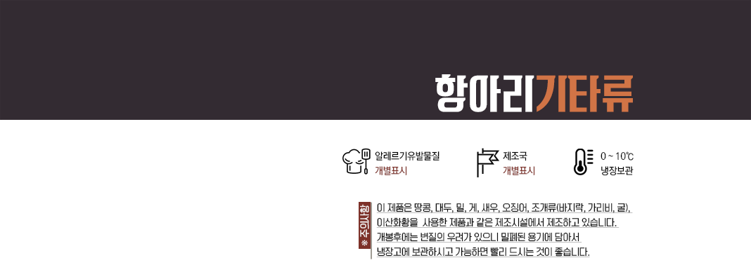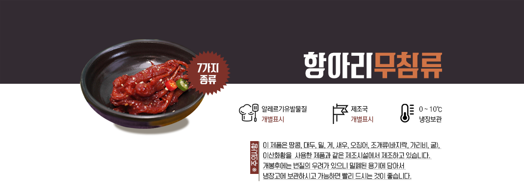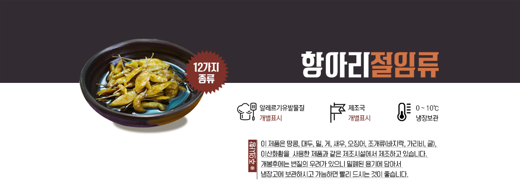 염장마늘쫑 60%[마늘쫑(중국산), 구연산, 정제소금, 정제수], 고추장[밀쌀(미국산), 고추양념{양파, 마늘, 정제수, 고춧가루(중국산)), 소맥분, 정제수, 물엿], 물엿, 파프리카분말, L-글루탐산나트륨(향미증진제), 잔탄검분말, 소브산칼륨(보존료), 식초, 고춧가루, 혼합간장[소맥분, 탈지대두, 효소처리스테비아, 파라옥시안식향산에틸, 카라멜색소, 액상과당, 정제수], 혼합양념[중국산(데스트린, 양파, 마늘, 설탕, 정제소금, 고춧가루)]